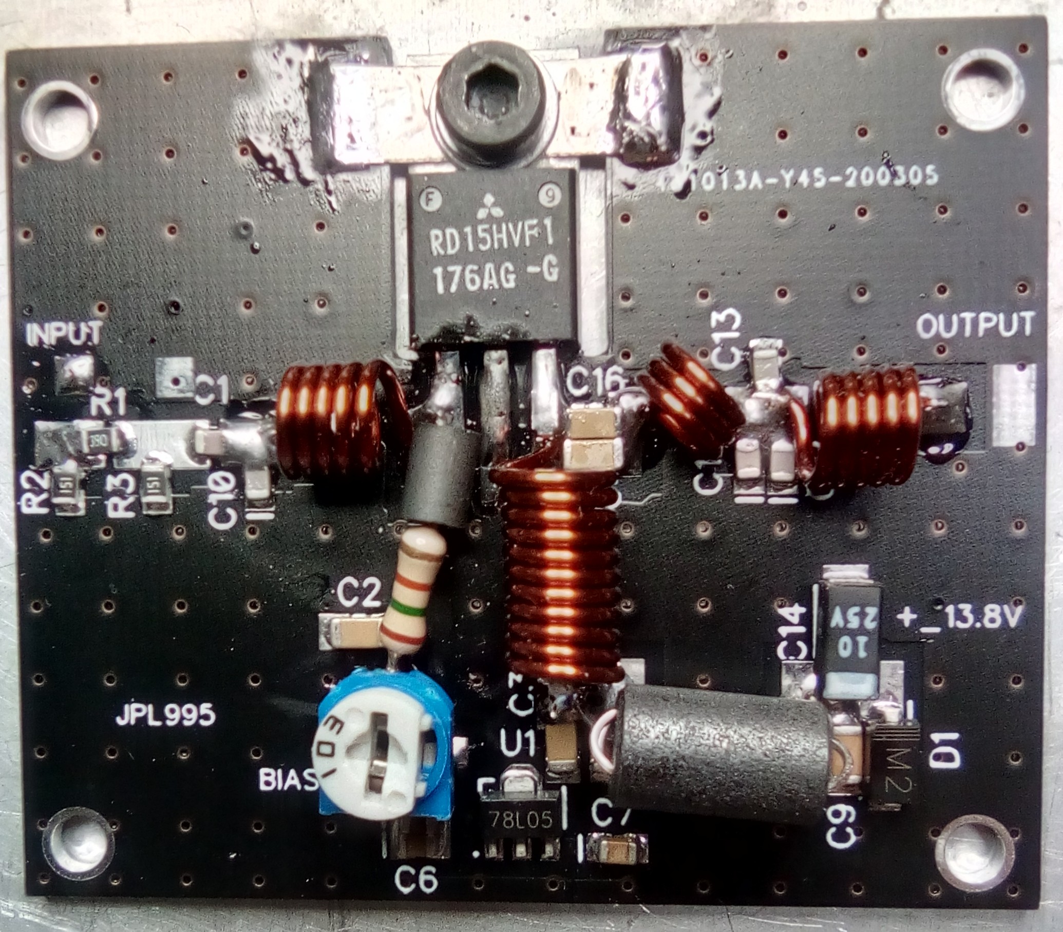 LINEAR AMPLIFIER FOR FM BAND 87.5-108 BROADBAND 15 WATT (13.8VOLT 1.5A) WITH TWO INPUTS 0.2WATT-0.5WATT INPUT OR 1WATT INPUT. WITH MITSUBISHI RF FET RD15HVF1. DOUBLE SIDE PCB EXCELLENT QUALITY.IDEAL AMPLIFIER FOR FM TRANSMITTER.Check out my other items! PCB DIMENSIONS 5.3 X 4.5 CM FOR MORE INFORMATION'S PLEASE CONTACT ME.