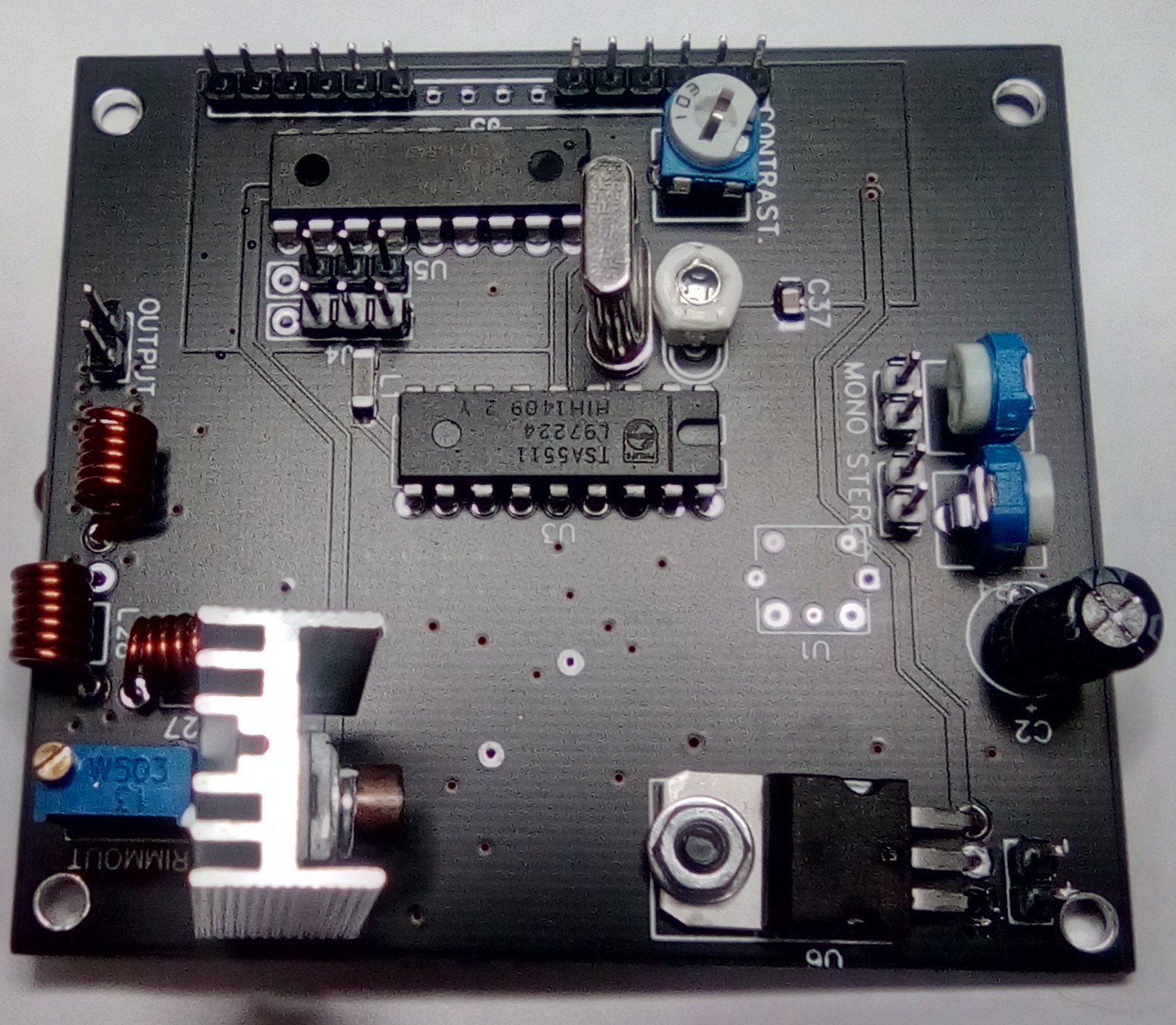 With protection circuit no rf output if not lock. clear sound. with low noise mosfet oscillator. 7 pole low pass filter to output >60DB.