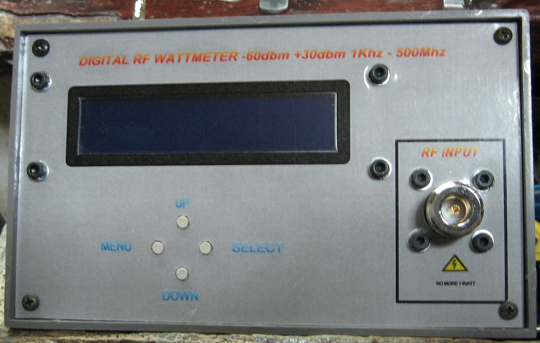 THIS IS DIGITAL MICRO WATTMETER WITH AD8307 AND 16F876A FULL ASSEMBLY, TESTED , CALIBRATED AND COMPLETE WITH CASE AS PHOTO.METER WATT , DBM, VOLT RMS ,METER SWR,AND SSB AVERAGE.(LOOK THE MENU AND PHOTOS).VERY EASY TO USE AND IS VERY HELPFULL DEVICE.WITH POWER ATTENUATOR YOU CAN METER POWER 10W OR 100W OR 1KW....... IF YOU WANT ONLY PCB'S WITHOUT CASE PLEASE CONTACT ME. WITH NEW BLUE LCD DISPLAY.
