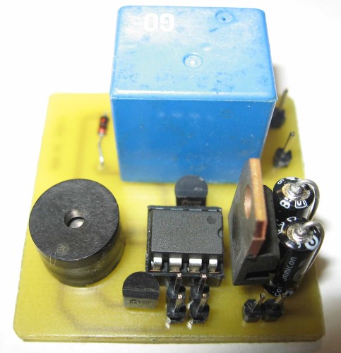 HIS IS TIMER SWITCH CIRCUIT WITH 12F629 PIC MICRO CONTROLLER. HAVE TWO TIMES PRESET 3 MINUTES AND 12 MINUTES WITH TWO BUTTONS. WHEN PUSH THE BUTTON FOR ONE TIME THE BUZZER GIVE ONE BEEP AND THE RELAY ON WHEN THE TIME IS END THE RELAY TURN OFF AND THE BUZZER GIVE 3 BEEPS. THE RELAY CONTACT'S IS 10A. HAVE REGULATOR AND WANT POWER 9-15VOLT 100mA. IS VERY STABLE, DIMENSIONS : 4cm X 4cm IF YOU WANT OTHER TIMES PLEASE CONTACT ME. IF YOU WANT ANOTHER PROJECT LIKE THIS PLEASE CONTACT ME.